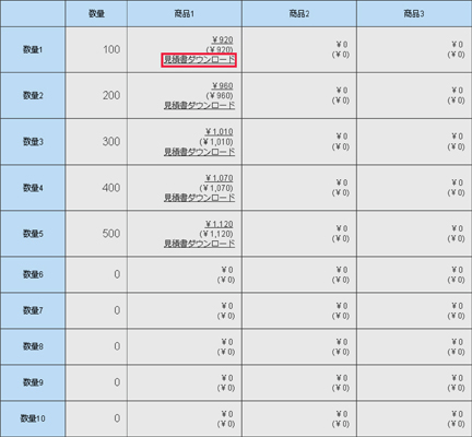 「見積書ダウンロード」をクリックするとPDF形式の該当見積書がダウンロードされます。